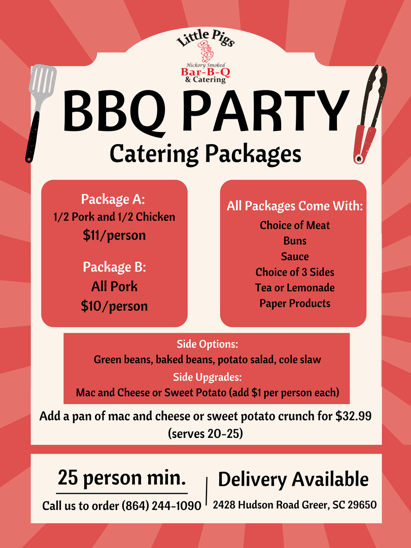 Call us at (864) 244-1090 to reserve your catering order.
